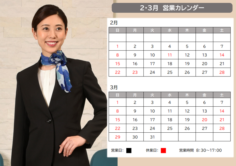2月・3月の営業日