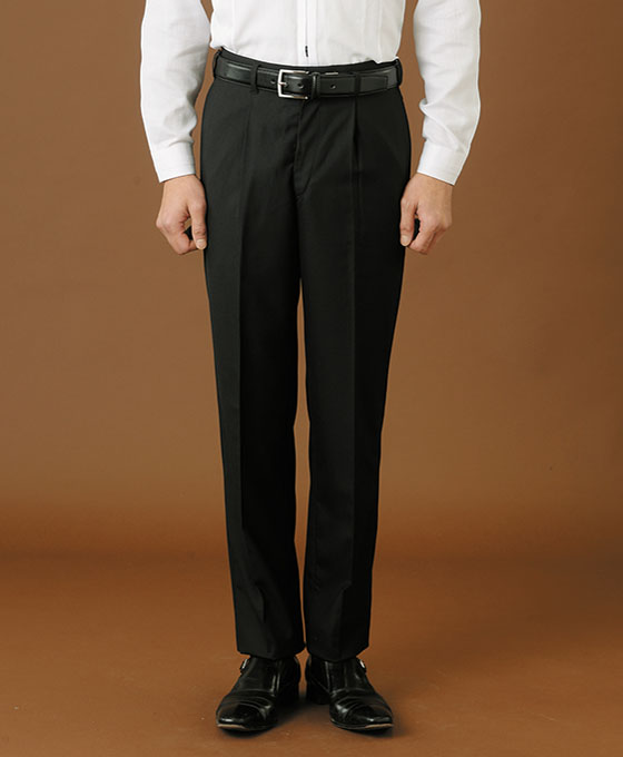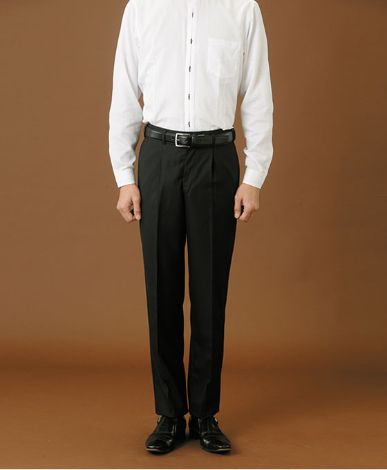 シンプルなシルエットのノータックパンツ
